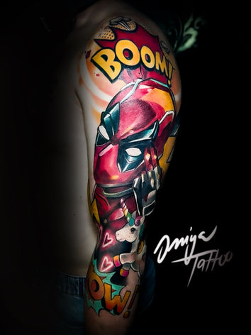 The color tattoo style is characterized by vibrant and colorful colors that are used to create bold and attractive designs. This style can include a variety of motifs, from realistic to illustrative, with an emphasis on combining colors and shading to create depth and dynamism. Colors are often layered and blended to create rich and vibrant effects.